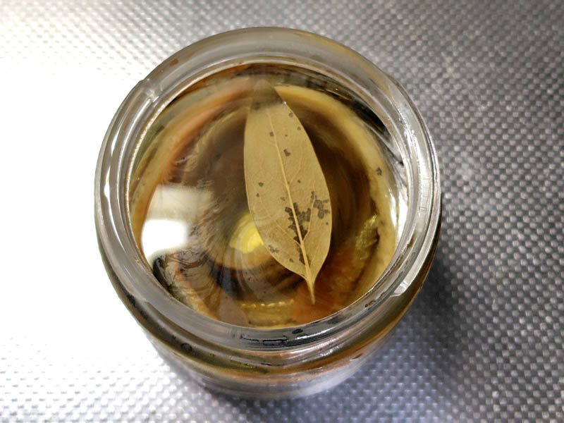 ③煮沸消毒したガラス瓶にイワシの身を貼り付けるように並べ、最後に空気を追い出しながらオリーブオイルで覆い、完成。(空気が残っているとイワシの腐敗、オイルの酸化につながる可能性が有ります