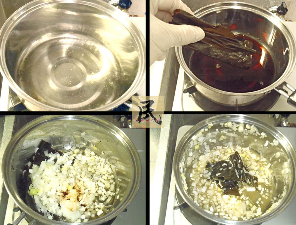 ③30分後、予熱が取れ、人肌レベルにまで温度が落ちたら、醤油50ml、昆布、塩麴、ネギを指定量入れ養生する。