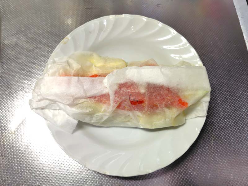 ①40~50㎝程の長さに切った幅30㎝クッキングシートを2枚準備する。