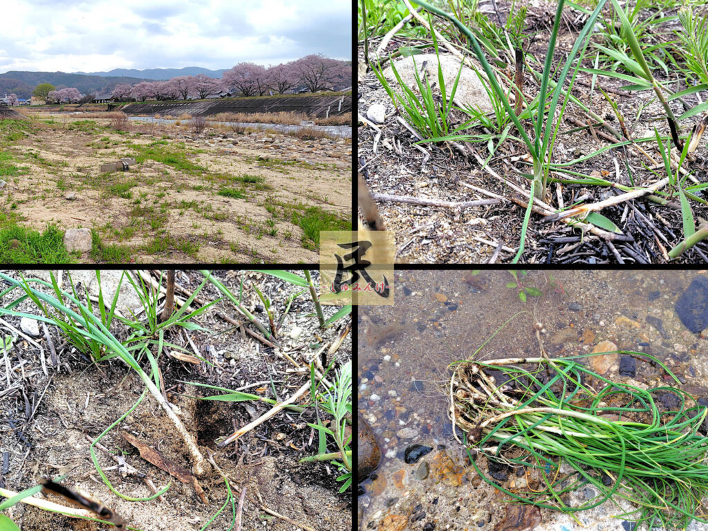 ②河川敷においては商用目的は禁止だが個人で楽しむ分には良いので、採取する。この時よく似た毒草もあるので自信がない方はスマホで確認しながら採取する。