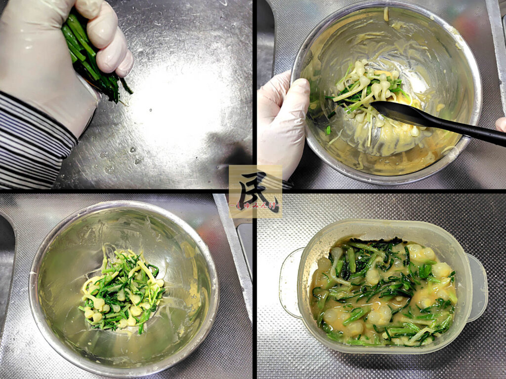 ⑤再度ノビルの水気を絞り、ボールの中の酢味噌にノビルをぶち込み和え、保存容器に移し冷蔵庫に1時間~1日程馴染ませる。染ませる。