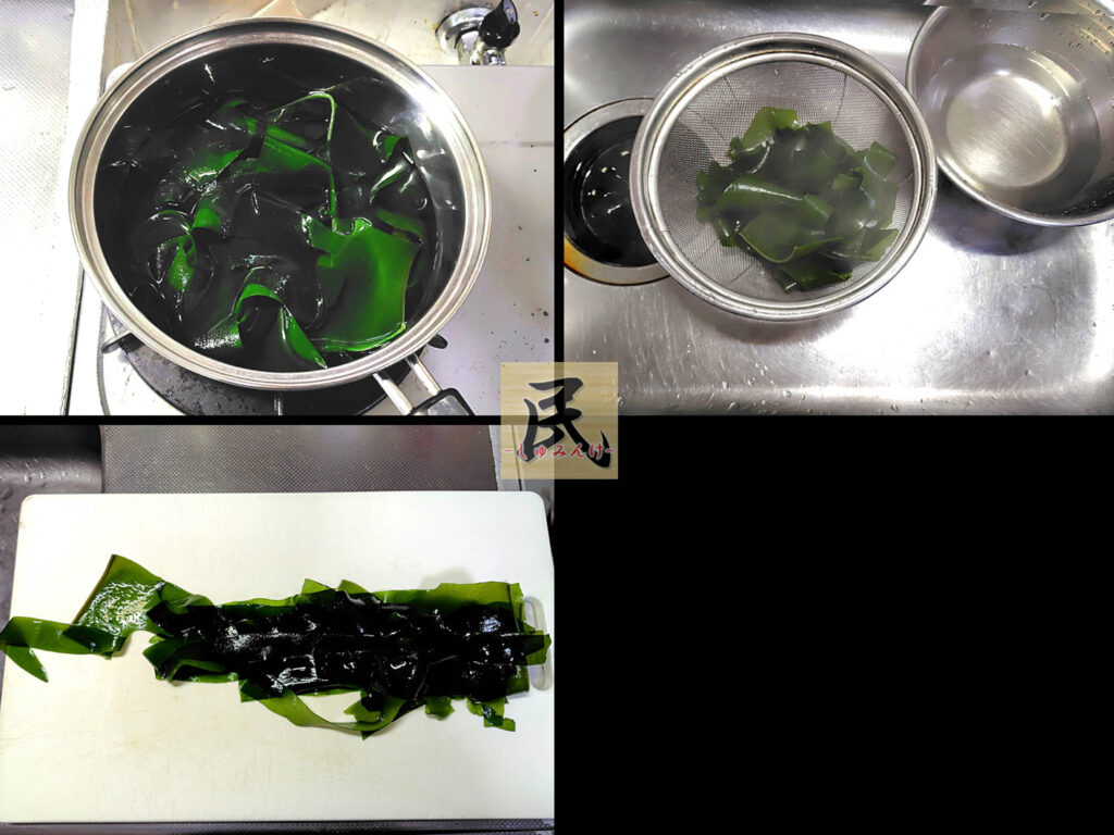 ②色が鮮やかな緑色に変わったら、湯から引き揚げ氷水に落とし水気を切って3㎝~5㎝の大きさに切り分ける。